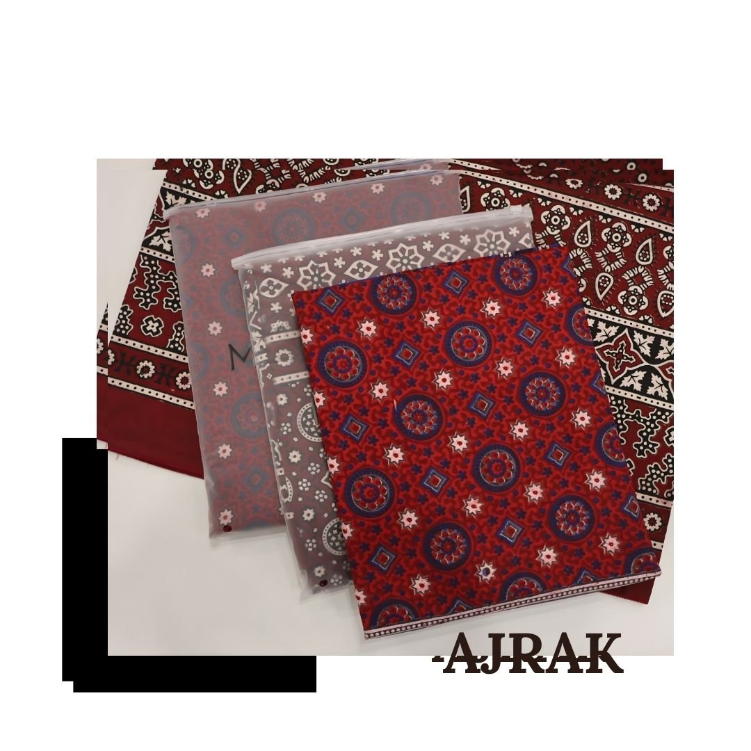Sindhi Ajrak is more than just a piece of fabric, it is a proud symbol of Sindhi culture and craftsmanship passed down through generations. Known for its distinctive geometric and floral motifs, Ajrak is traditionally created using detailed block printing techniques that result in rich, symmetrical patterns and vibrant colors such as deep red, indigo blue, and black accented with white highlights.